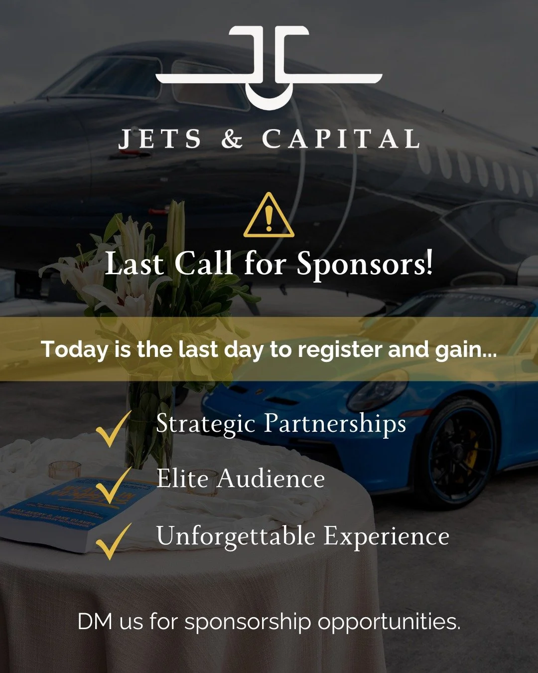 If you're an Investor, UHNW, Deploying Fund Manager, Family Office Principal or CIO who is looking to meet peers, enjoy a unique experience, and do deals together in a no pressure environment, I invite you to attend one of our events; we consistently get feedback from investors that these are the best events they have attended with the highest quality attendees they’ve met. If you’re raising capital for high quality projects and would like the opportunity to attend or present to our 500+ high caliber guests, I invite you to connect with us. If you're interested, please reach out to me or any member of the Jets & Capital team to discuss how you can get involved.