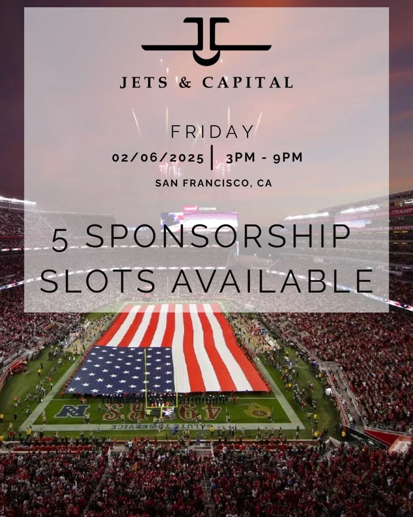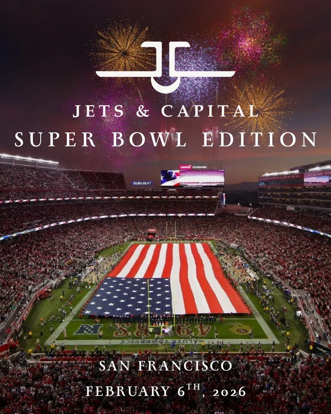 Jets & Capital: Super Bowl Edition is a premier experience blending luxury, philanthropy, and high-level networking. The day begins featuring sponsor and charity presentations, and intimate networking with family offices, investors, and philanthropists. In the evening, the event continues with broader networking, where over 500 guests gather surrounded by jets and supercars for sponsor showcases and powerful networking in conjunction with the 2026th Super Bowl in San Francisco, California.