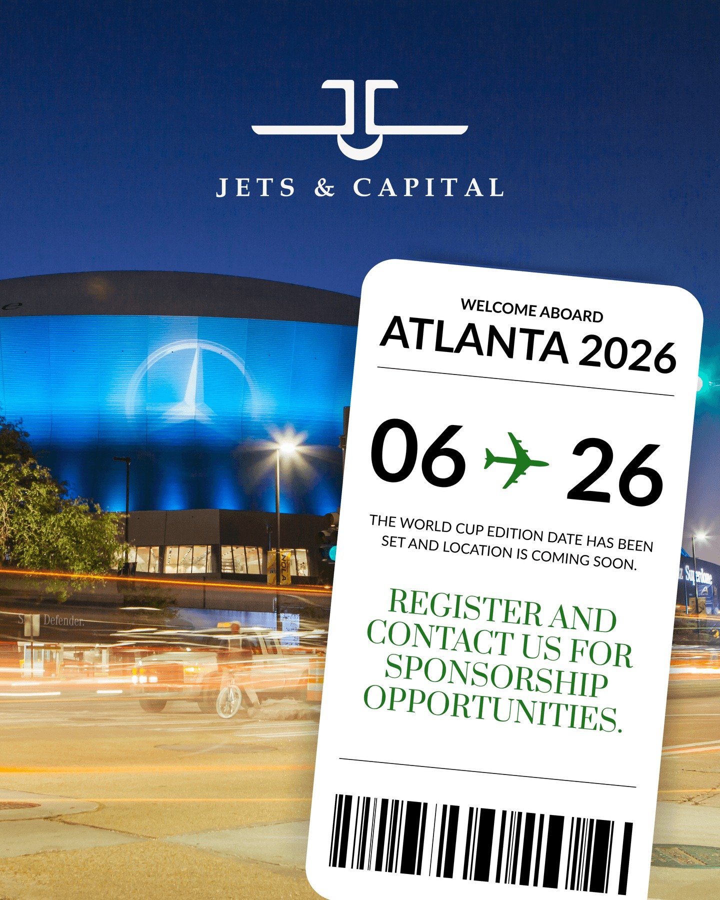 Jets & Capital: Super Bowl Edition is a premier experience blending luxury, philanthropy, and high-level networking. The day begins with sponsor and charity presentations, and intimate networking with family offices, investors, and philanthropists. In the evening, the event continues with broader networking, where over 500 guests gather surrounded by jets and supercars for sponsor showcases and powerful networking in conjunction with the 2026th World Cup Edition, in Atlanta, GA.